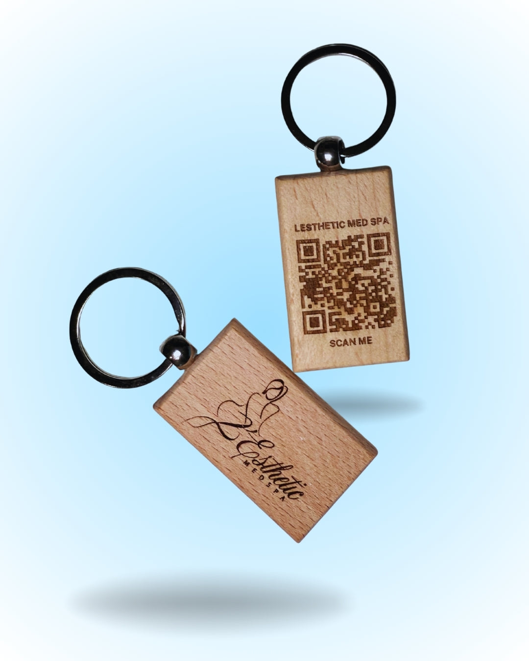 This engraved wooden keychain is crafted with precision to combine natural style and modern functionality. Made from durable wood, each piece is laser engraved with your logo or design, and features a custom QR code that connects directly to your digital world—whether it’s your business, social media, or personal brand. A unique accessory that blends elegance and technology, designed to leave a lasting impression.